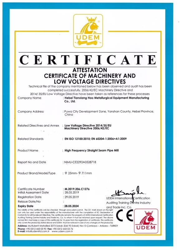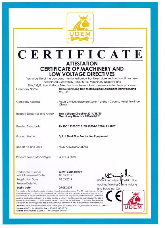 河北天翔昊冶金設備制造有限公司是一家專業服務于鋼管生產廠家的綜合型企業。公司位于“中國管道裝備制造基地”中國?鹽山。公司東臨渤海,北臨京津,南靠齊魯,有多條高速公路和國道穿境而過,距離天津港僅180公里,交通運輸十分便利。 公司現發展成以螺旋焊管和高頻焊管生產線的研發、制造、檢修、改造、移機、安裝調試和生產技能培訓等服務一體的特色企業。公司設有機械設備研發部、技術部、生產部、銷售部、國際貿易部、售后服務部等,可為客戶提供整套的管道設備及生產工藝設計方案。經過10余年的經營研發創新和團隊精湛的技術,使公司產品走出國門,進入國際市場。 公司擁有雄厚的技術研發團隊,設計部擁有中、高級工程師10余人,可根據不同客戶對產品的不同要求,量身定做和改造各種螺旋管鋼管生產線以及精整檢測設備,憑借良好的職工素質和專業的技術力量而著稱于同行業,公司產品獲得國家專利。 公司在“誠信經營,信譽至上”的經營方針指導下,精心服務于國內外鋼管生產企業。多年來公司不斷追求管理創新和科技創新,建立了完善的